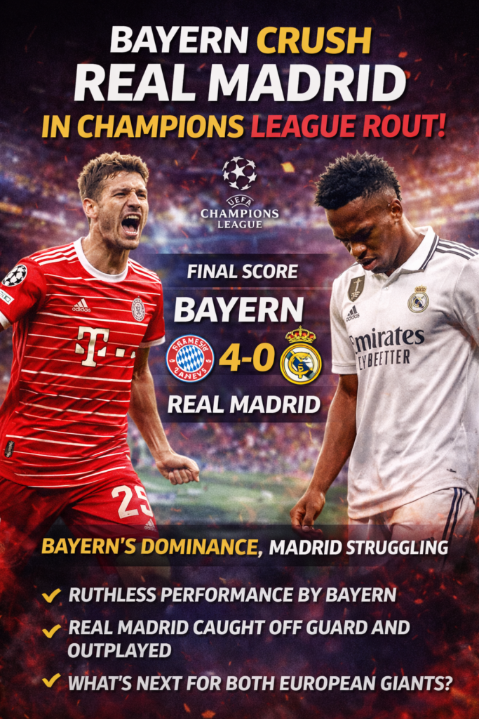 In a stunning night of European football, Bayern Munich delivered a commanding performance to defeat Real Madrid in the UEFA Champions League. The result has sent shockwaves across the football world, highlighting Bayernโs strength and exposing Madridโs vulnerabilities.