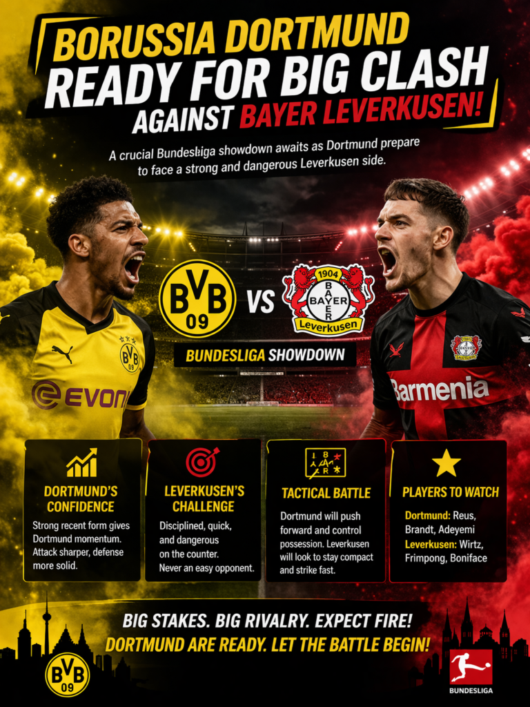 A high-stakes clash awaits as Borussia Dortmund prepare to face Bayer Leverkusen in what promises to be one of the most exciting fixtures in the Bundesliga calendar.