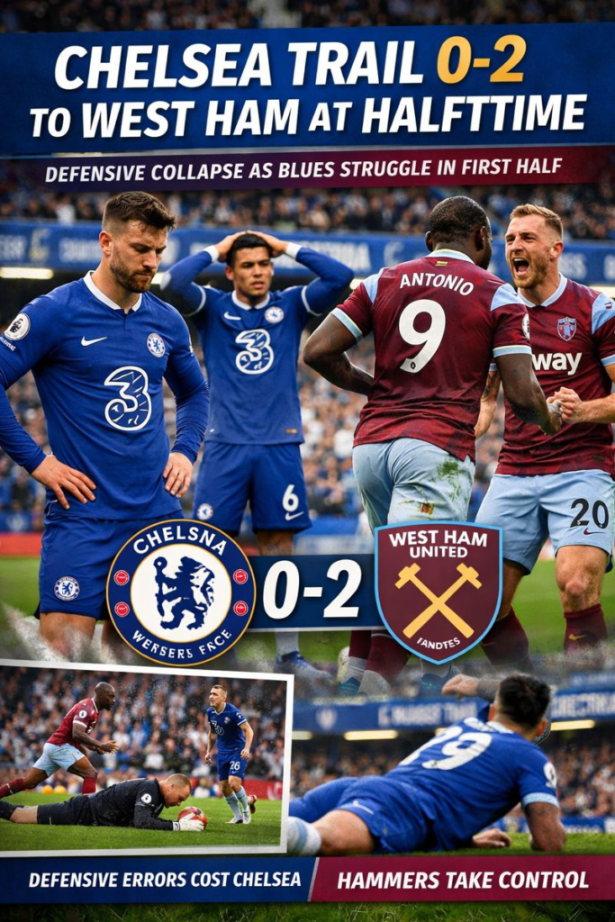 Chelsea supporters were left shocked as the Blues trailed 0–2 to West Ham at halftime in a first half defined by defensive lapses, missed chances, and ruthless finishing from the Hammers. Stamford Bridge fell quiet as West Ham capitalized on Chelsea’s early instability, exposing familiar weaknesses that have haunted the side throughout the season.