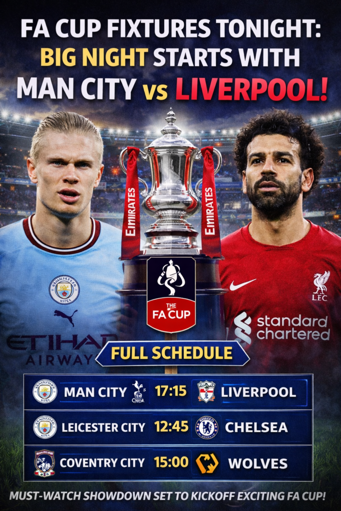 Football fans are in for a thrilling evening as the FA Cup returns with a highly anticipated schedule. Headlining tonightโ€™s action is a blockbuster showdown between Manchester City and Liverpool FCโ€”a fixture that promises intensity, drama, and top-quality football.